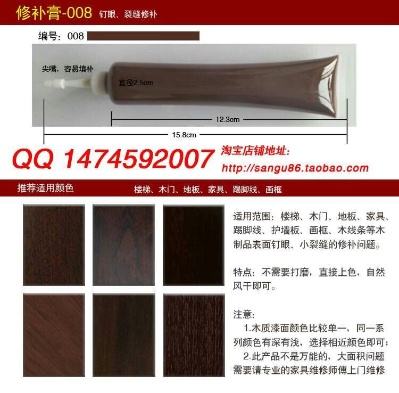 修补膏/地板钉眼修补膏/木质家具漆面维修填补膏/裂缝填补膏。颜色多样无需调色,直接涂抹上色,自然风干,十分方便,快速解决问题。