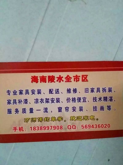 海南陵水 软硬装安装 地板贴砖 美缝 纱窗 家具搬运 安装 维修 等 联系电话:18389972107