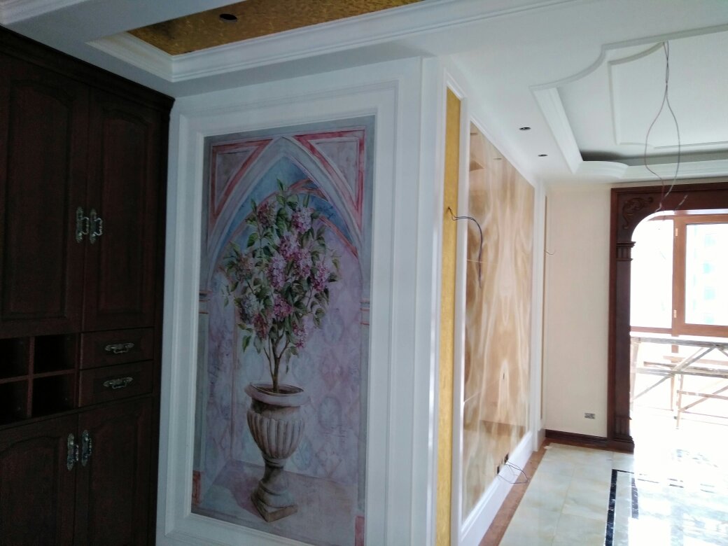 在金阳世纪城龙吉苑18栋2单元14楼给客户贴的墙布壁画,三室一厅呢,装修需要贴墙纸的可以找我们。