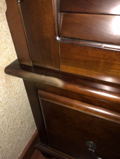 实木衣柜局部油漆美容,不小心喷了其他颜色油漆,很难看。有让厂家发原油漆,能否帮忙修补。