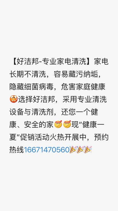 【好洁邦-专业家电清洗】家电长期不清洗,容易藏污纳垢,隐藏细菌病毒,危害家庭健康[惊恐]选择好洁邦,采用专业清洗设备与清洗剂,还您一个健康、安全的家[奋斗][奋斗]