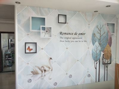 贴墙布壁画现场实照