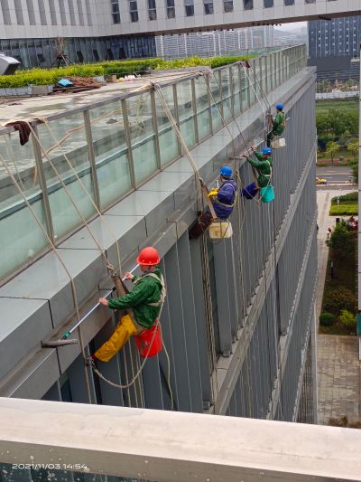 专业外墙清洗高空作业,没经培训请勿模仿哦,高危险的交给专业的人来做