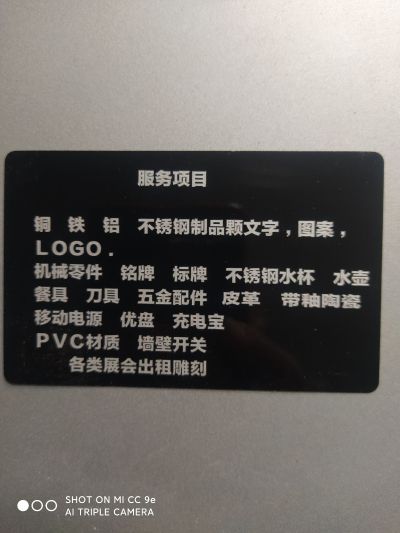 激光打标,刻字,Logo,在五金配件,不锈钢餐具,刀具,机械零件,移动电源,墙壁开关,上刻文字,标识。定制金属名片,铭牌