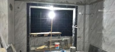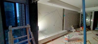 背景墙安装,大理石窗门套。