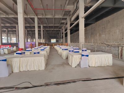 会议舞台桁架背景喷绘物料安装