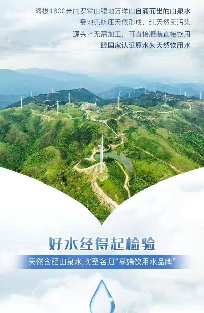 一款源自郴州桂东万洋山的富硒山泉水,4款产品:分别为500ml瓶装水/24瓶/件,330ml瓶装水/24瓶/件,5L桶装水4桶/件,10升桶装水